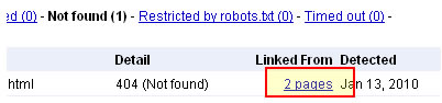 7.) To the right of each of these URL’s you will see a link under the “Linked From” heading “X Pages”. Click this link.