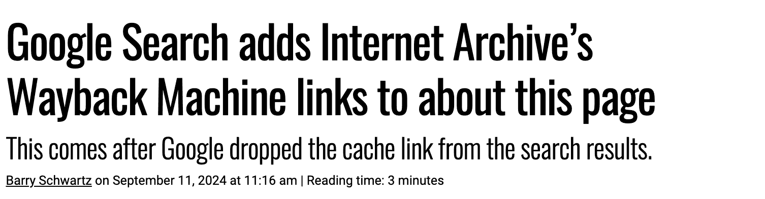 Google Search adds Internet Archive’s Wayback Machine links to about this page – Google Search introduces Wayback Machine links for additional context in search results.