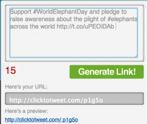 (Click to see example: Support #WorldElephantDay and pledge to raise awareness about the plight of #elephants across the world http://t.co/uPEOiDab)