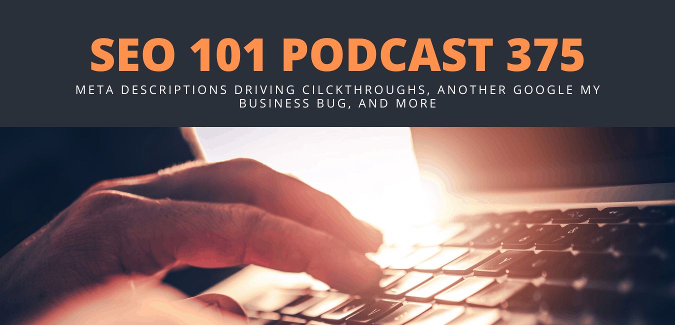 Home $ Posts $ SEO Podcast $ SEO 101 Episode 375: Meta Descriptions Driving Cilckthroughs, Another Google My Business Bug, and More