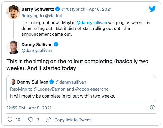 In early April, Google did an update that affected this. Then, there’s been some unconfirmed talk that there was an update to the update around the 30th. I guess that would have been Friday or Saturday.
