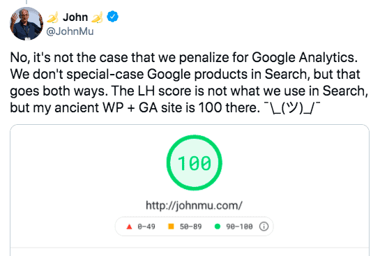 In a sense, penalizing is the wrong word. It certainly slows your site down by the looks of it. However, John Mueller posted his response saying, no, it’s not the case that we penalized Google Analytics, which is obviously true.