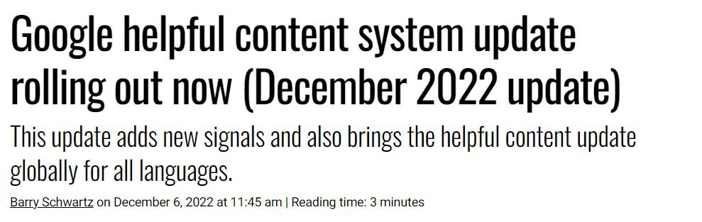 - December Google Helpful Content Update