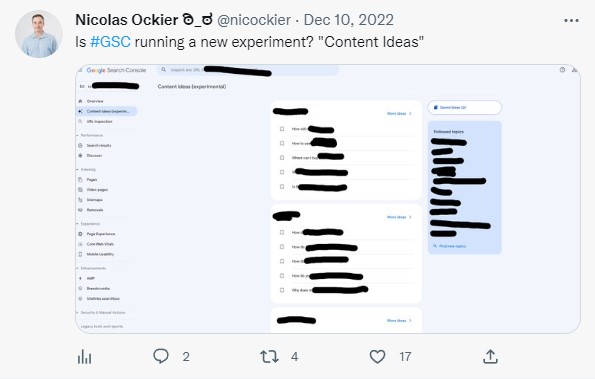 Content Ideas May be coming to Google Search Console