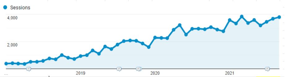 - In 2021, their organic traffic has stabilized at an impressive 104% of visits since the previous year.